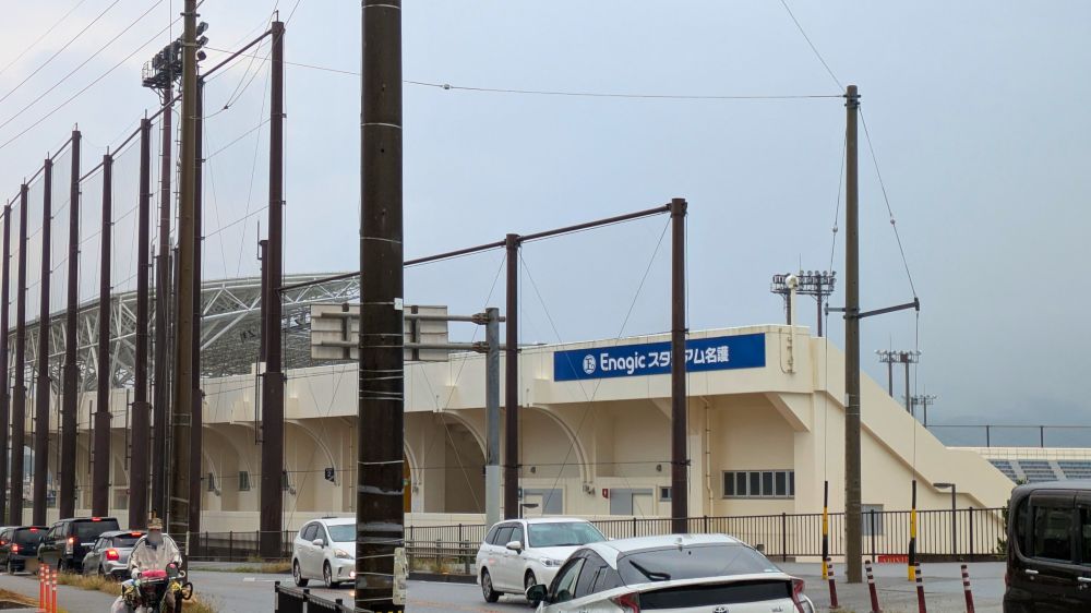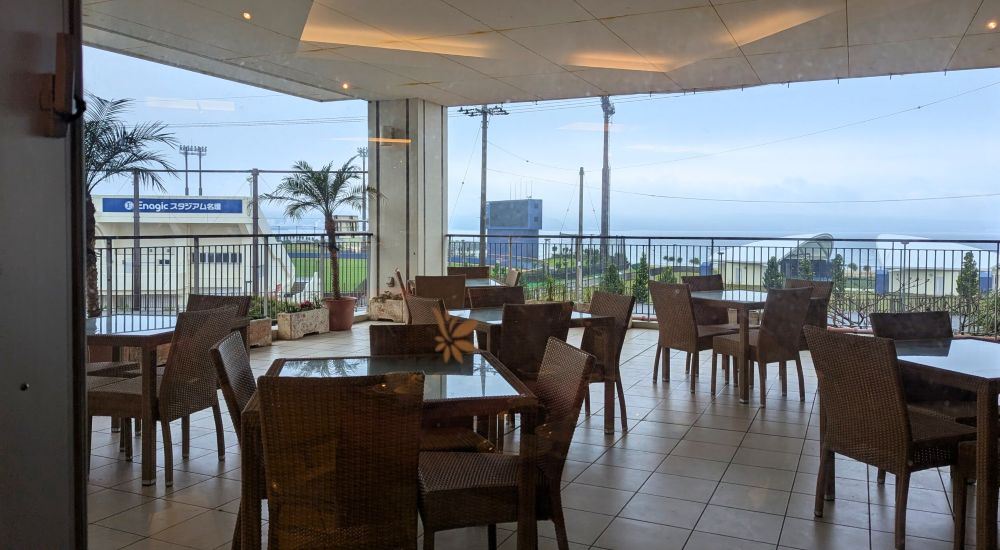 ホテルの前には、エナジックスタジアム名護がある。
