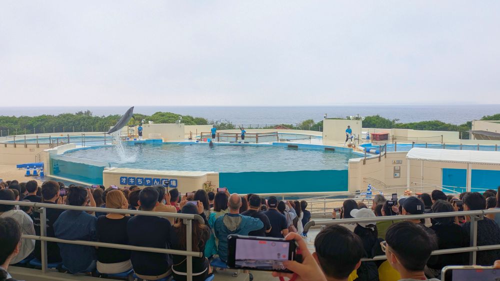 オキゴンドウやバンドウイルカたちのショーが繰り広げられる。