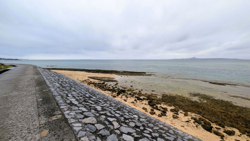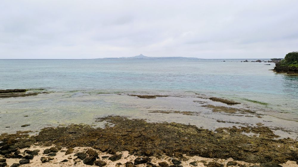 向こう側に見えるのは、伊江島(タッチュー)。