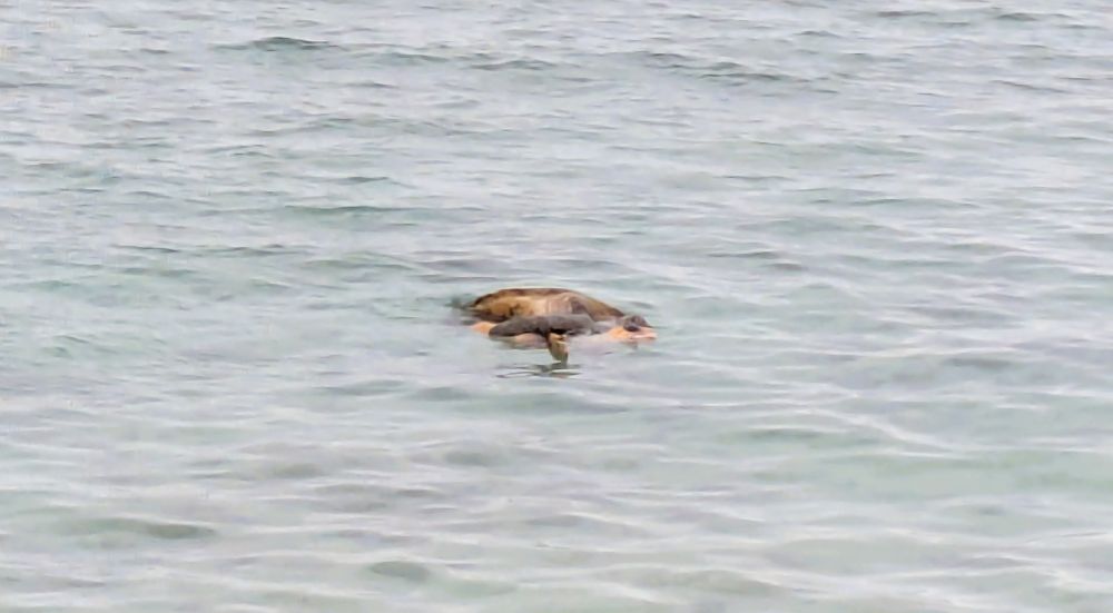どうやら、ウミガメが溺れそうになっているのでは…と心配そう。