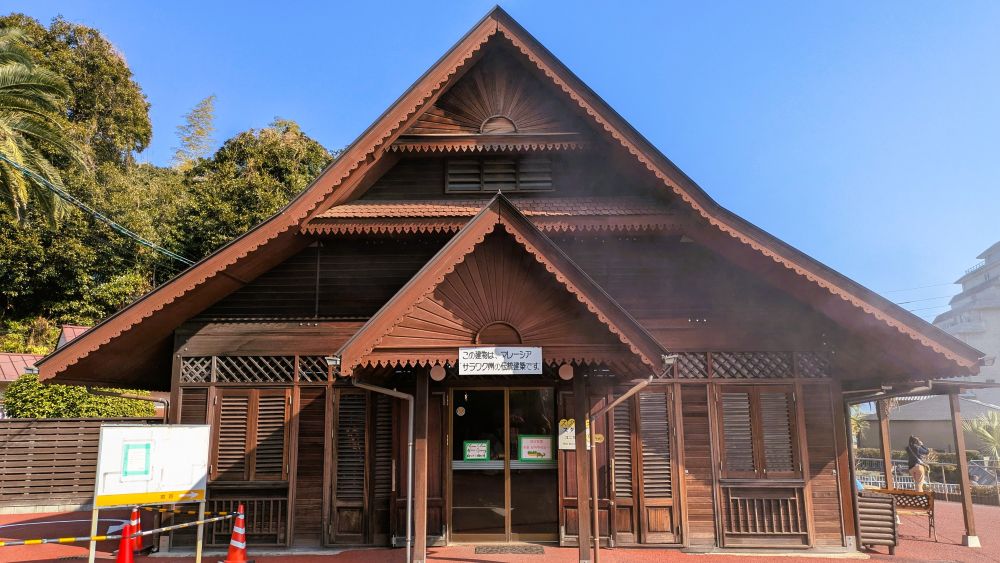 「この建物は、マレーシアサラワク州の伝統建築です。」と書かれている。