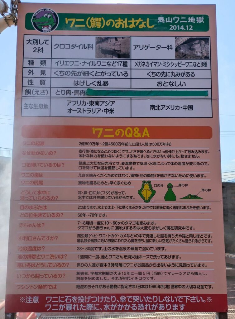 ここは『鬼山』という名の通り、かつてこの地に出没した『鬼』にまつわる伝説に由来している。地獄の蒸気を利用してワニを飼育するという、世界でも珍しい取り組みを行っており、その光景は圧巻。
